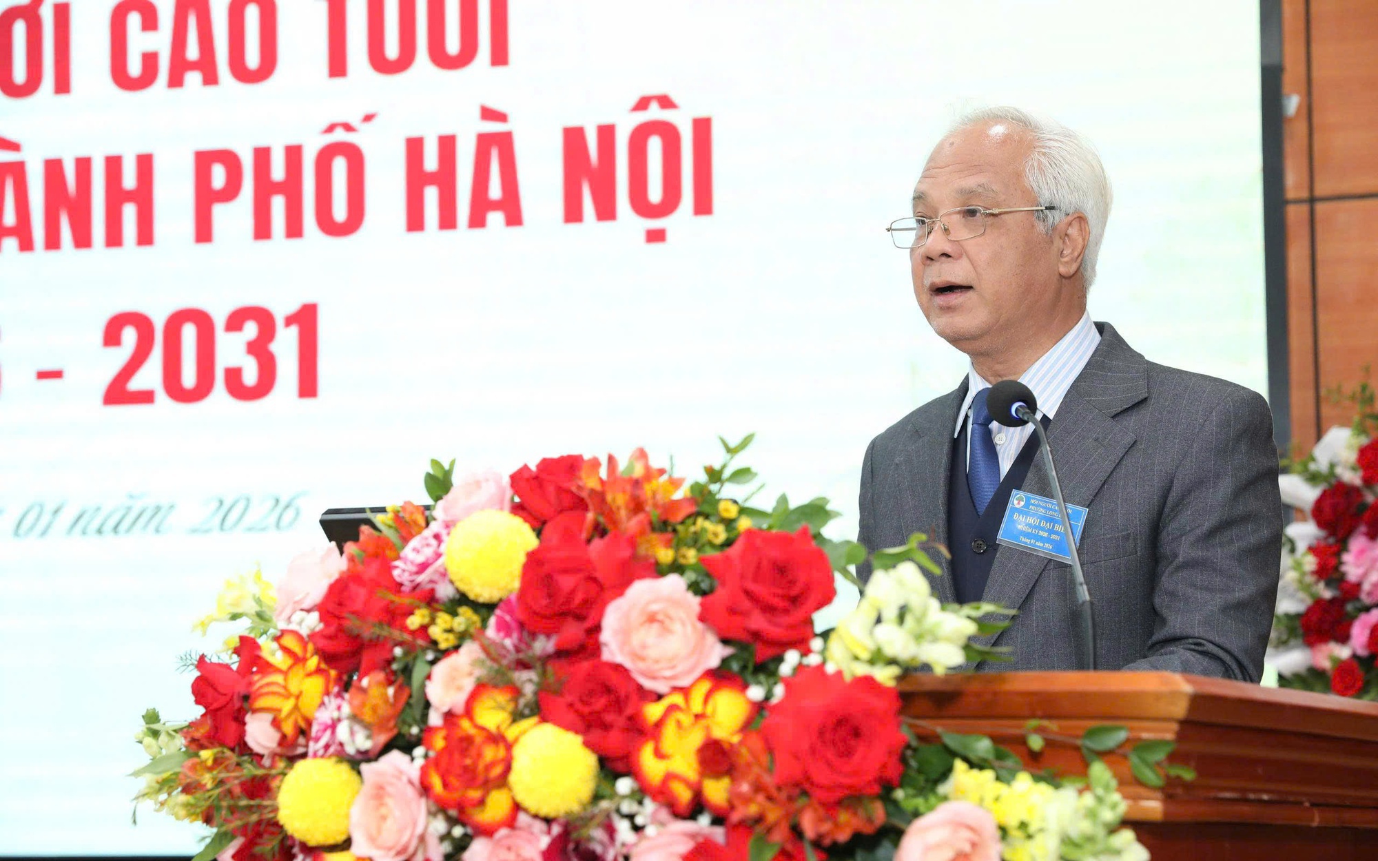 Đ/c Nguyễn Thế Toàn - UVTV TW Hội Người cao tuổi Việt Nam, Chủ tịch Hội Người cao tuổi thành phố Hà Nội phát biểu tại đại hội
